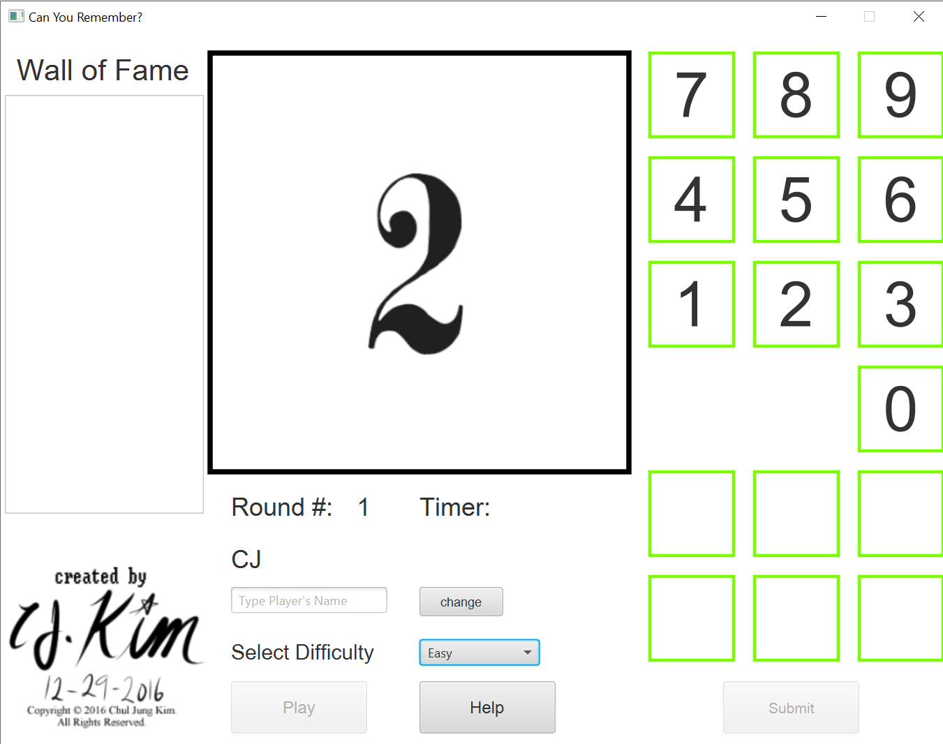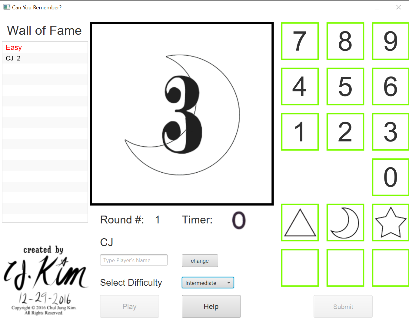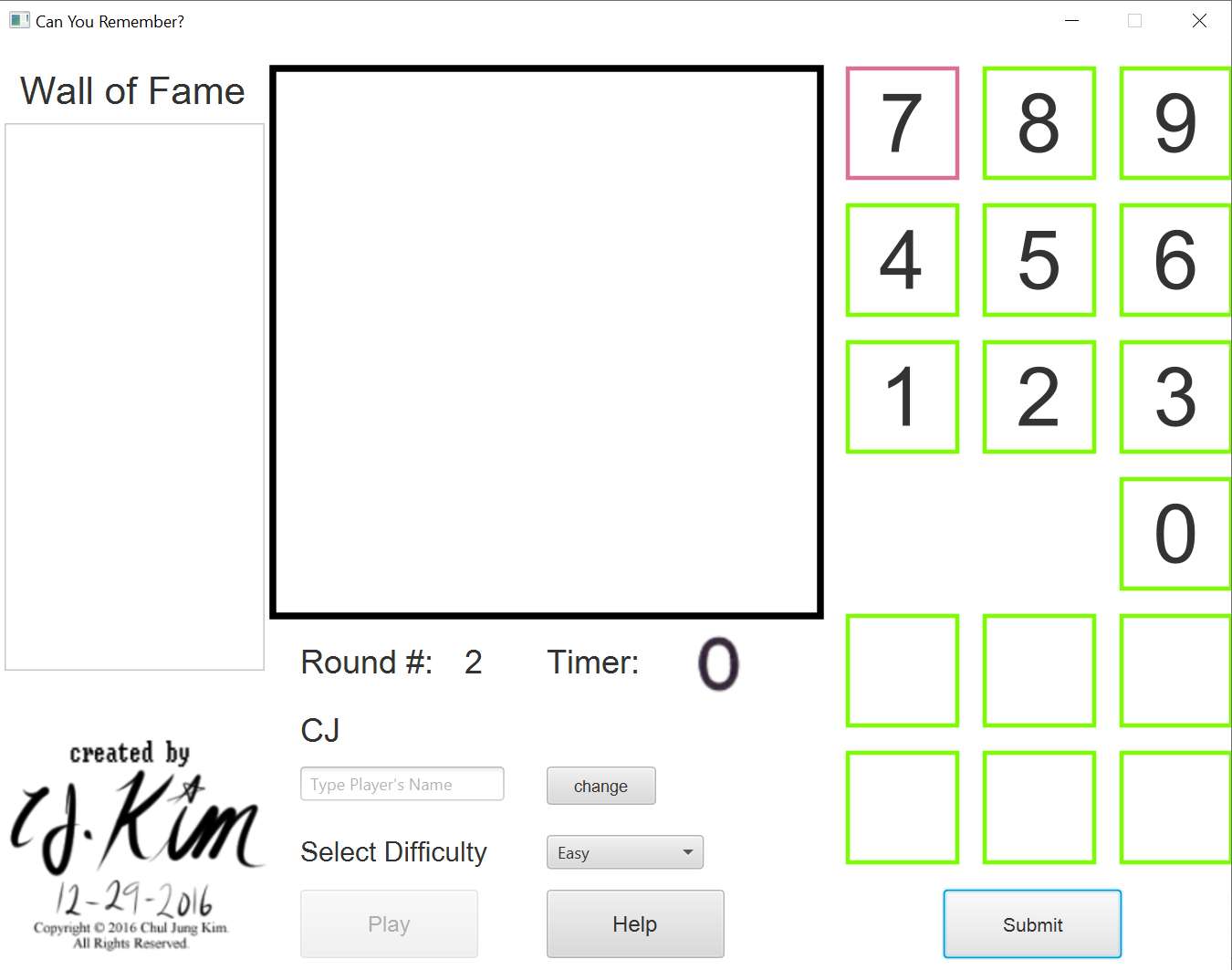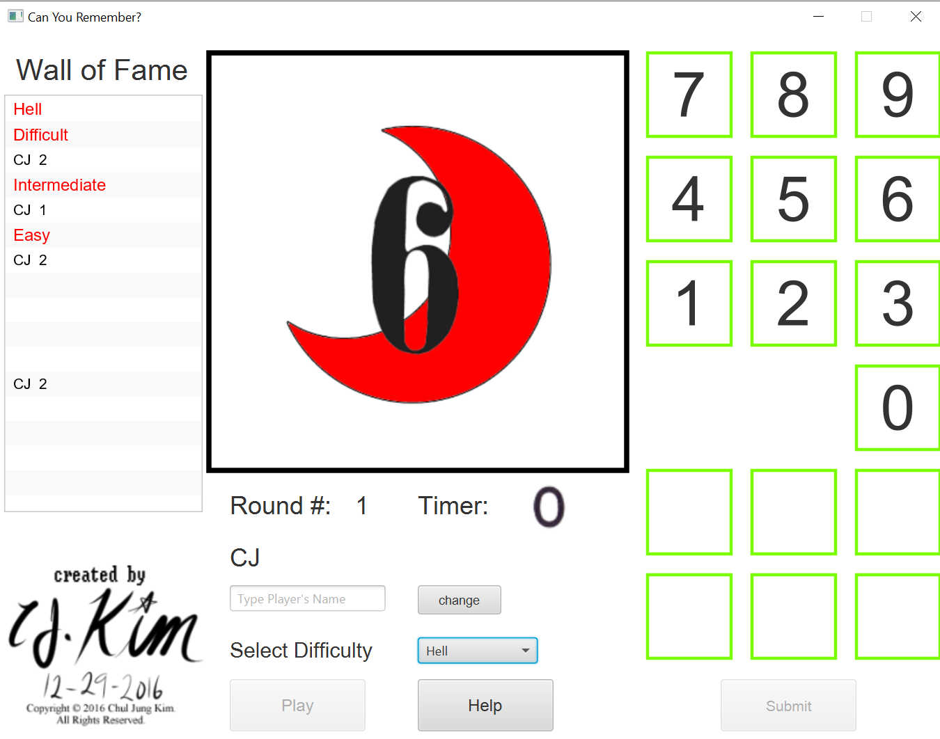 Right before this project, I created the 4x4 brain teaser game, Find the Same Number from Korean TV show. And I noticed I was pretty bad at the game, so I wanted to create a warm up game. When I was trying to come up with what to make, I remembered I already created one from college, but it was on a physical microchip with its own LED and a slider. So I wanted the game to be harder and only digital, and this was created.