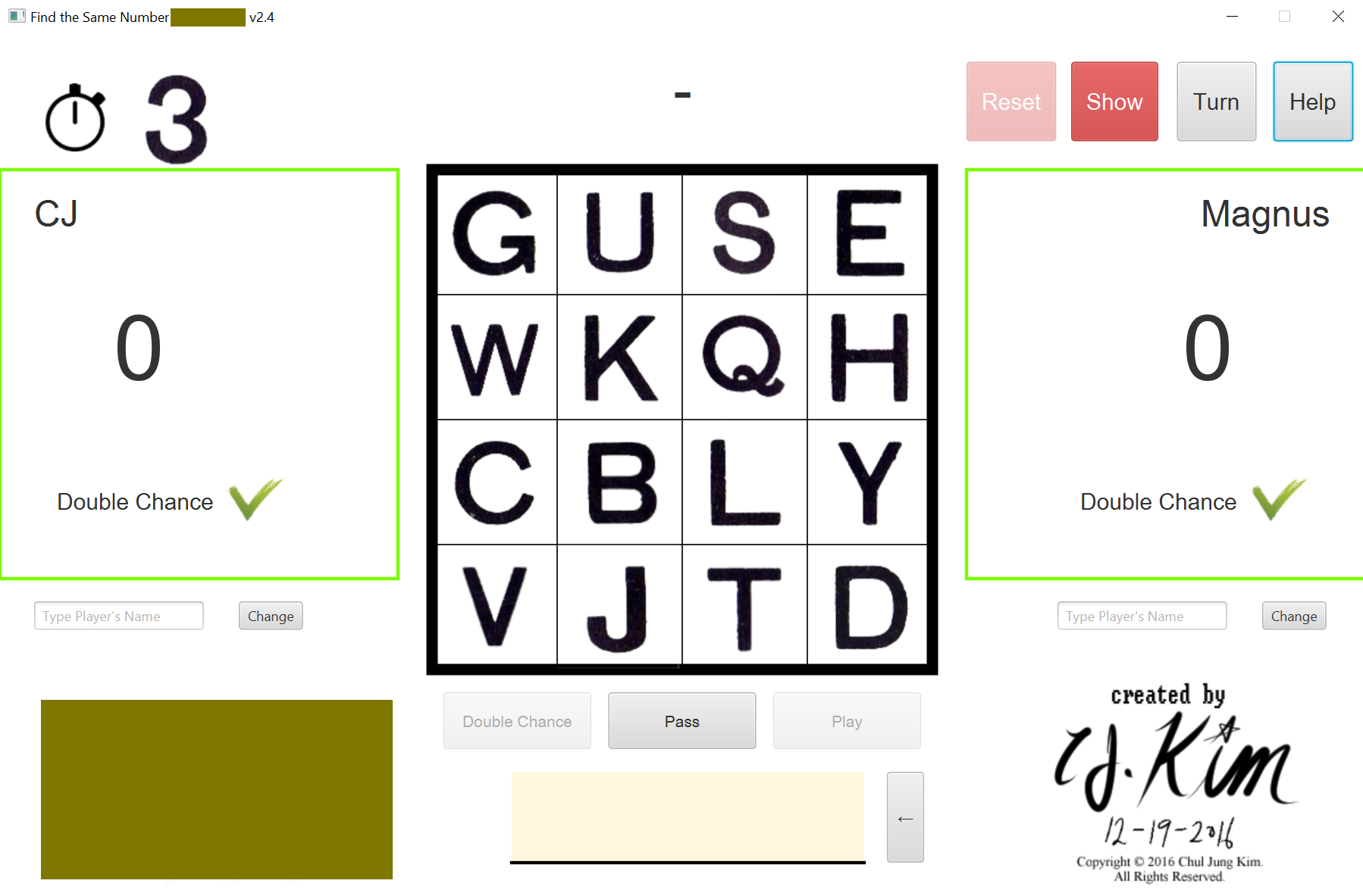 In 2014, Korean TV show 'The Genius: Black Garnet' aired. It was the 3rd season of 'The Genius' where it displayed this game. The show is all about puzzles and competitive games where participants need to go through to be the last person remaining. After I learned enough skills on Java with JavaFX from my last project Penta Chess, I wanted to create a game that I already knew and loved so I can also play it with my family and friends. I had a Surface Pro 3 back then which had a touch screen, so I made the buzzers touchable as well (the green outline).
