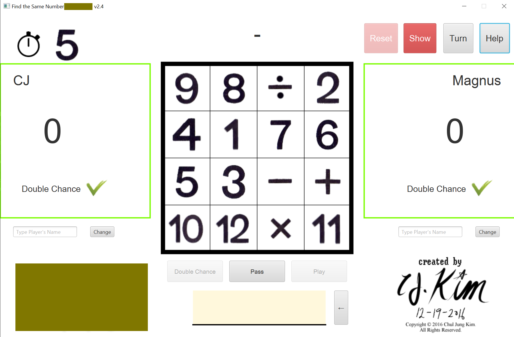 Memory-based mathematical puzzle game requiring players to form equations from hidden tiles within time limits, implemented with multi-threaded timer system and competitive gameplay inspired by Korean game TV show