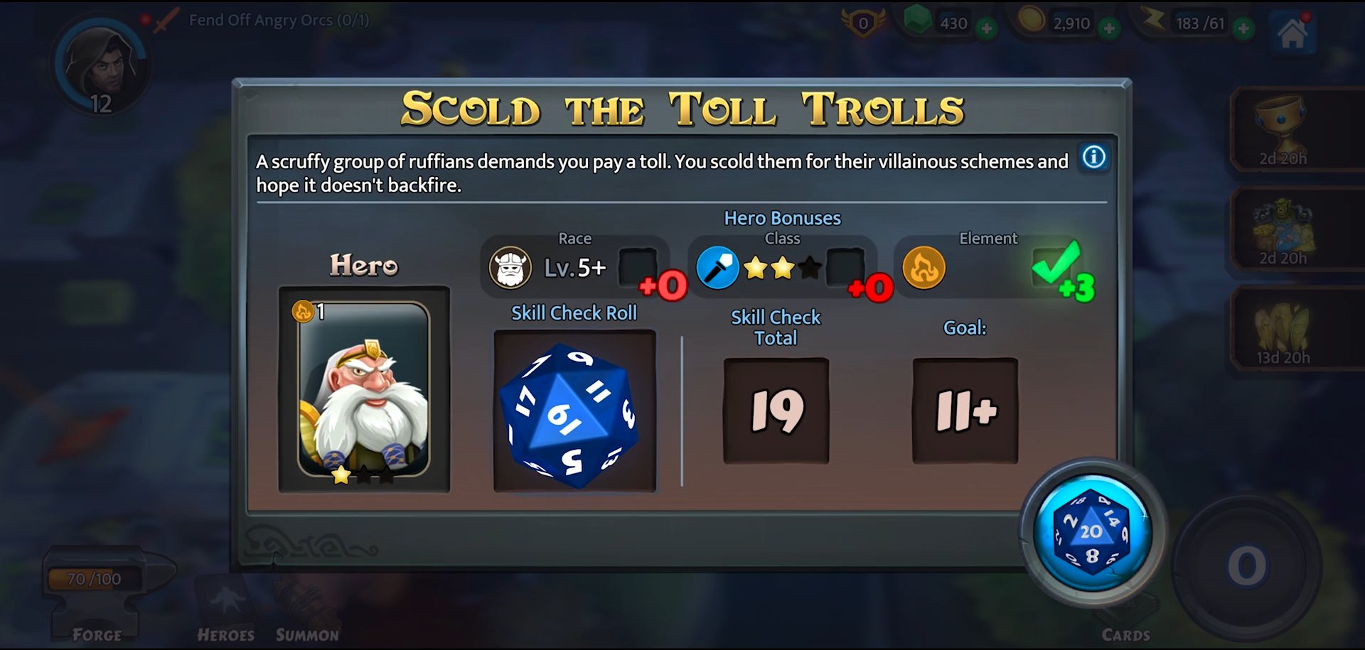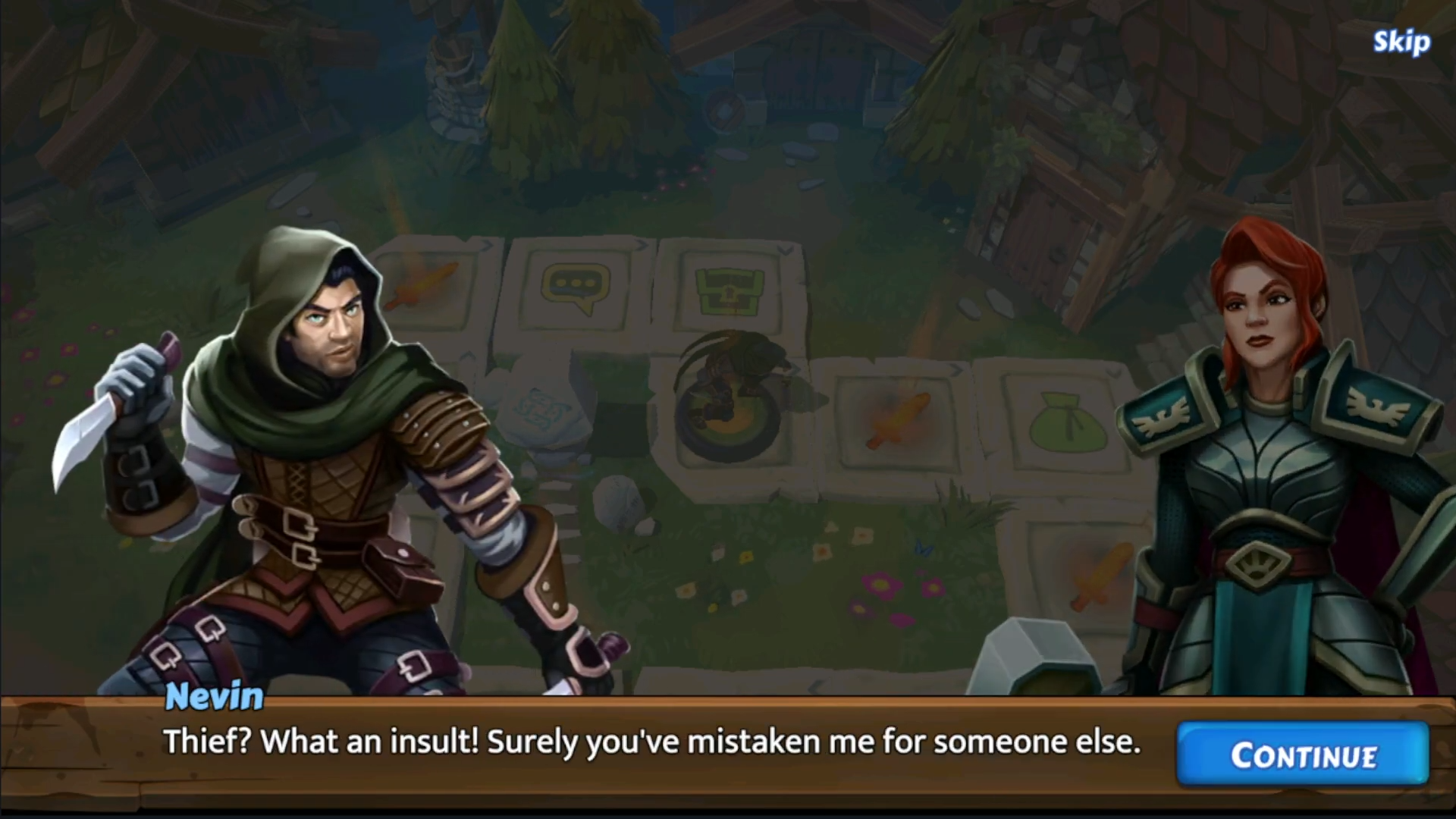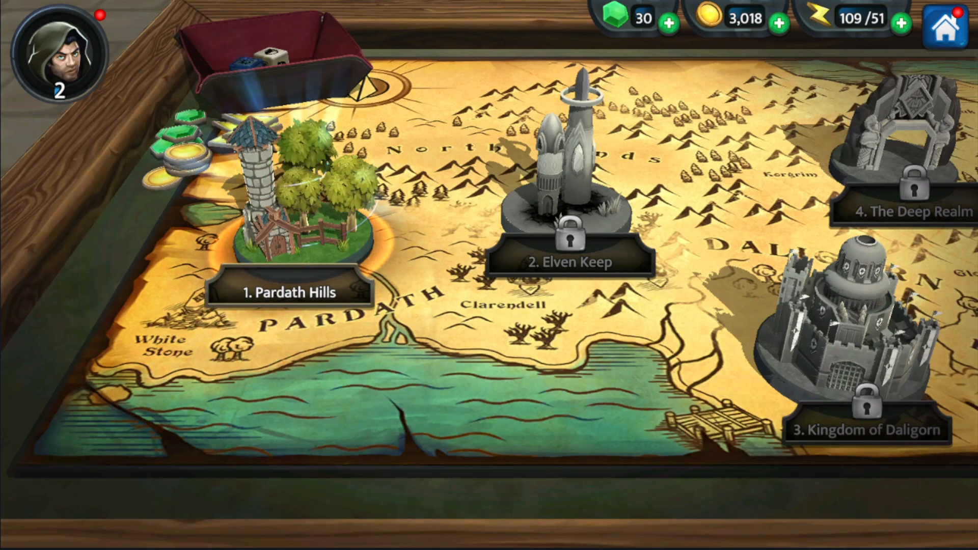 Mobile tactical RPG with board-game campaign progression, dice-rolling combat, gear/team loadouts, strategic card plays, and hero upgrades.